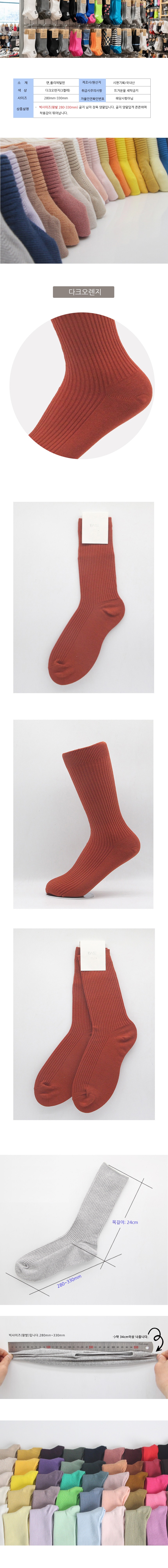 남성 빅사이즈 가는골지 장목양말 다크오렌지 3켤레