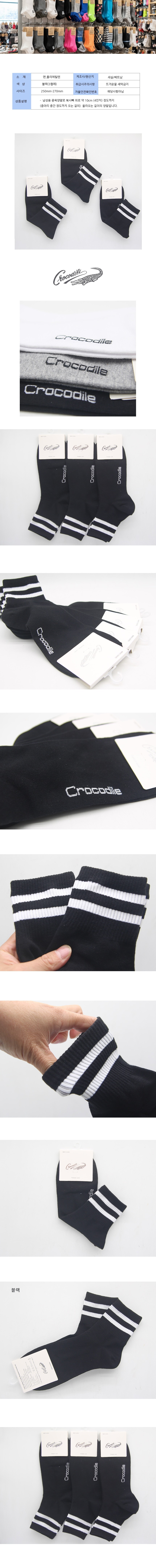 크로커다일 남성 투라인 중목양말 블랙 3켤레