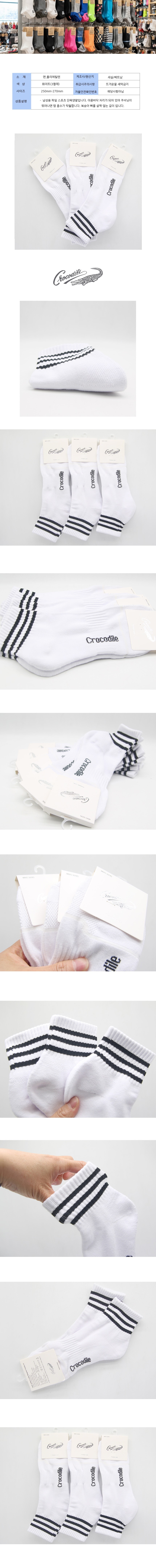 크로커다일 이중바닥 단목 스포츠양말 화이트 3켤레