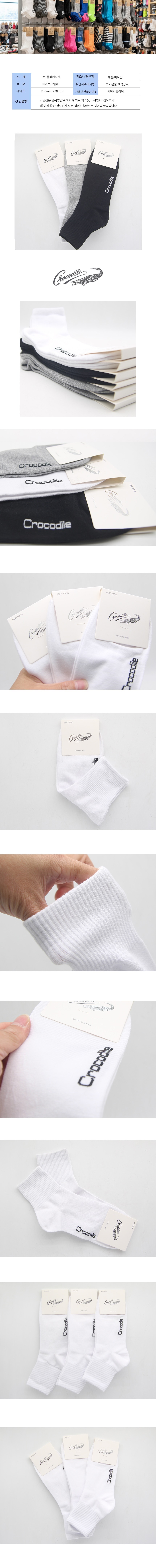 크로커다일 남성 무지 중목양말 화이트 3켤레