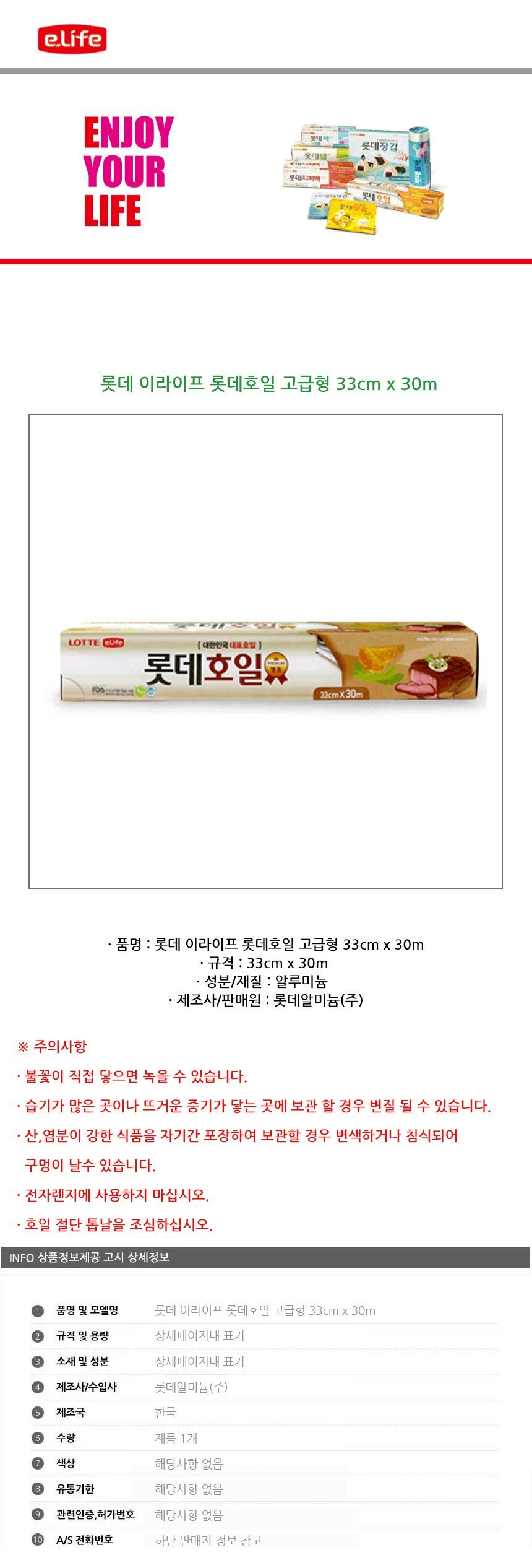 롯데 이라이프 쿠킹호일 고급형 33cm x 30m