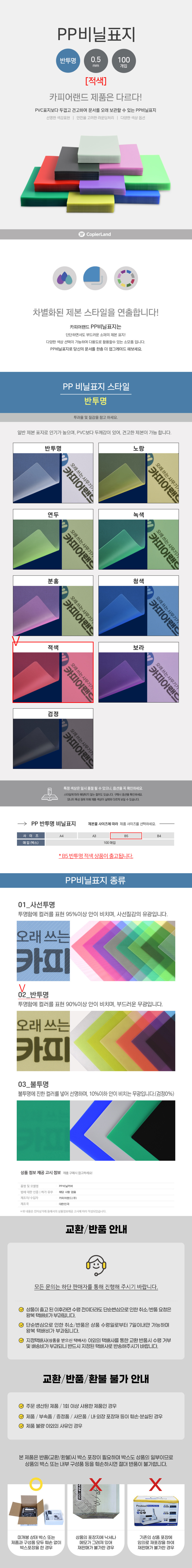 B5 제본용 PP표지반투명 적색 100매