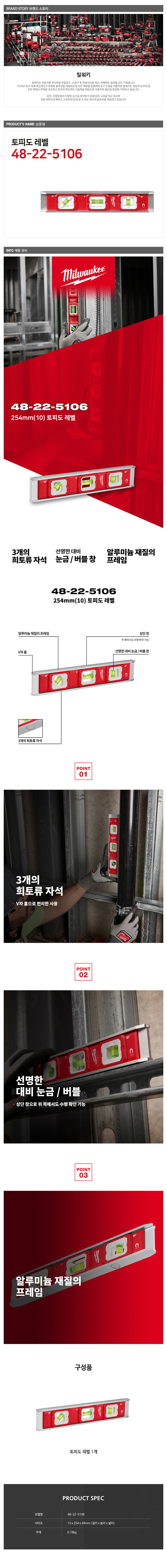 밀워키 48-22-5106 토피도 레벨 254mm 자석수평기