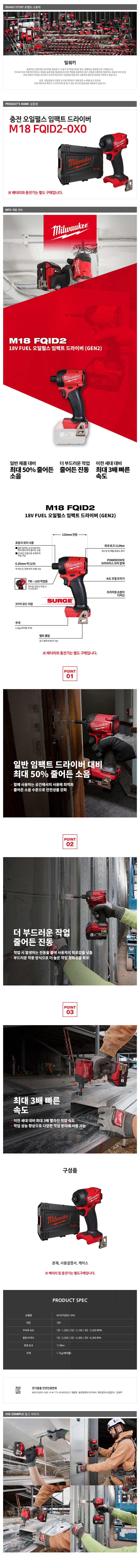 밀워키 M18 FQID2-0X0 충전임팩드라이버 18V 베어툴
