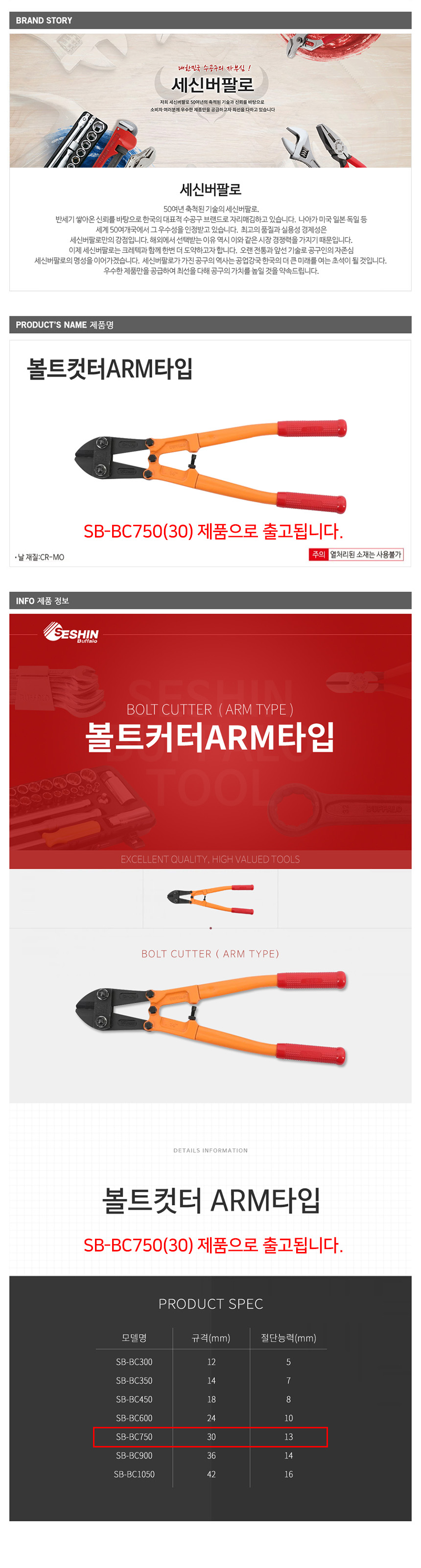 세신 볼트캇타 ARM타입 양손용 SB-BC750 30mm