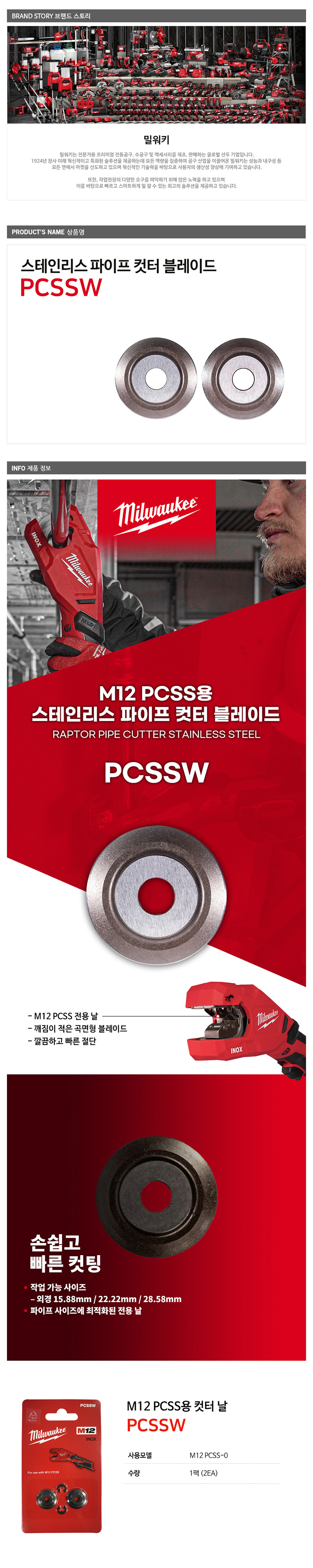 밀워키 PCSSW 스텐파이프컷터날 M12 PCSS-0 블레이드