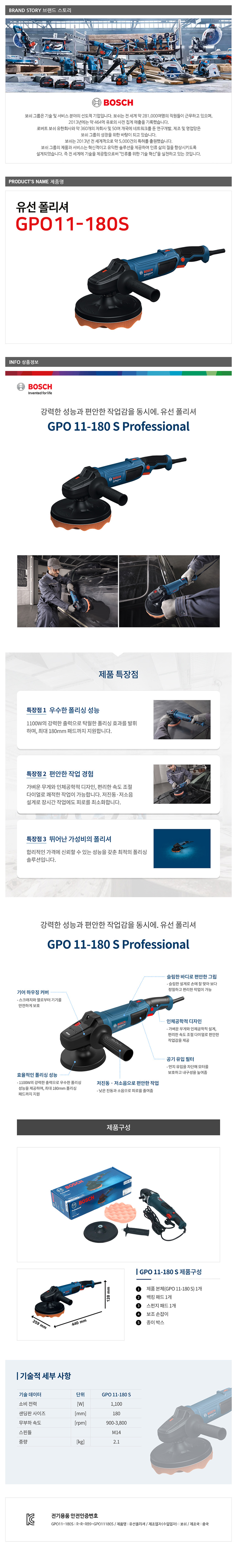 보쉬 GPO11-180S 폴리셔 180mm 1100W 6단 속도조절