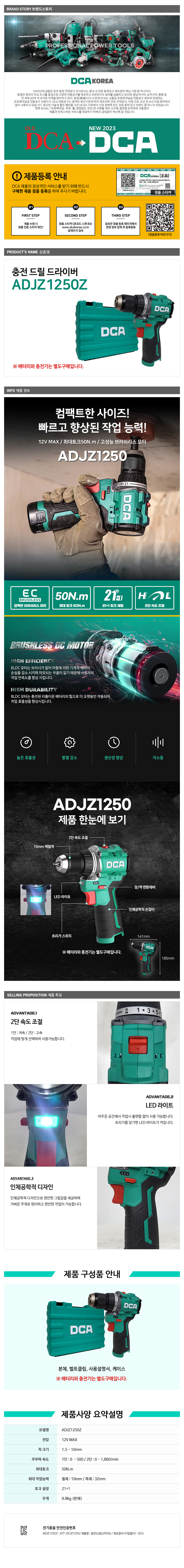 DCA ADJZ1250Z 충전드릴 12V 베어툴 BL모터 2단 조절