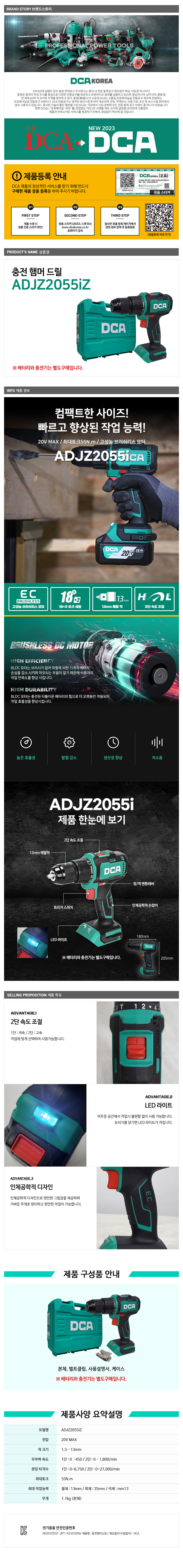 DCA ADJZ2055iZ 충전햄머드릴 20V 베어툴 BL모터