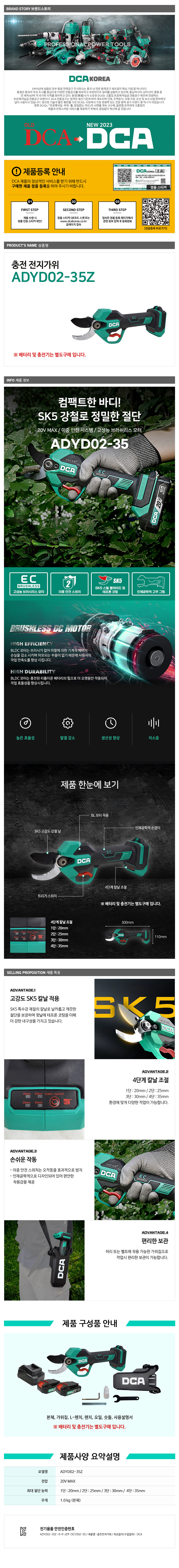 DCA ADYD02-35Z 충전전지가위 20V 베어툴 BL모터