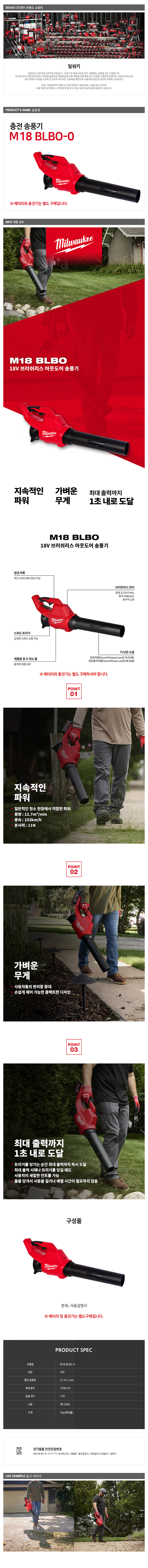 밀워키 M18 BLBO-0 충전송풍기 18V 베어툴 BL모터
