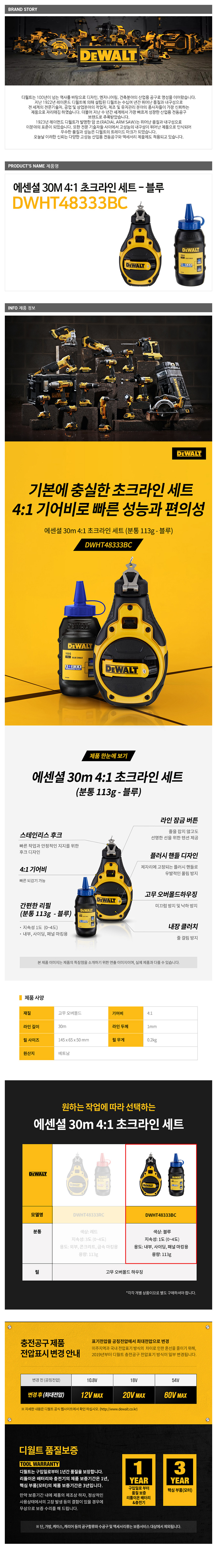디월트 DWHT48333BC 블루 초크라인세트 30m 분통포함