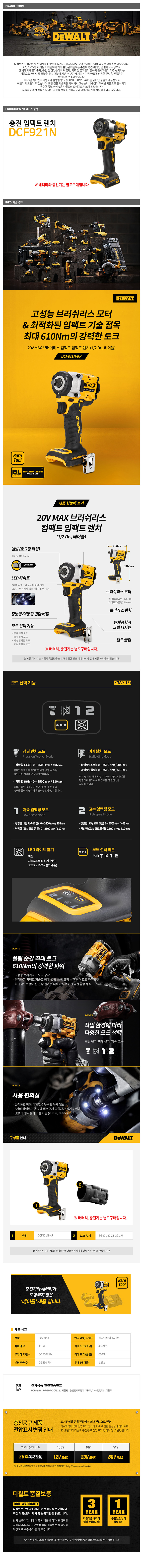 디월트 DCF921N 충전임팩렌치 20V 베어툴 BL모터