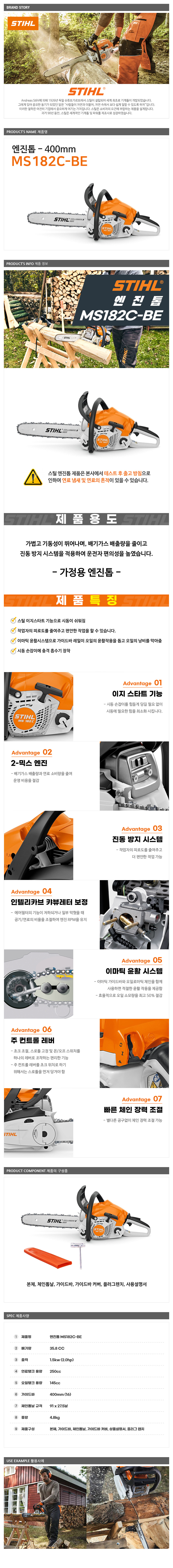 스틸 MS182C-BE 엔진톱 400mm 35.8cc 2마력
