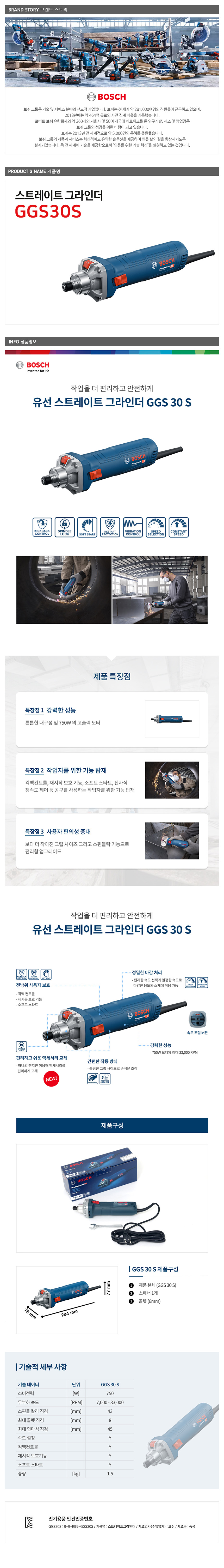 보쉬 GGS30S 스트레이트 그라인더 750W 속도조절