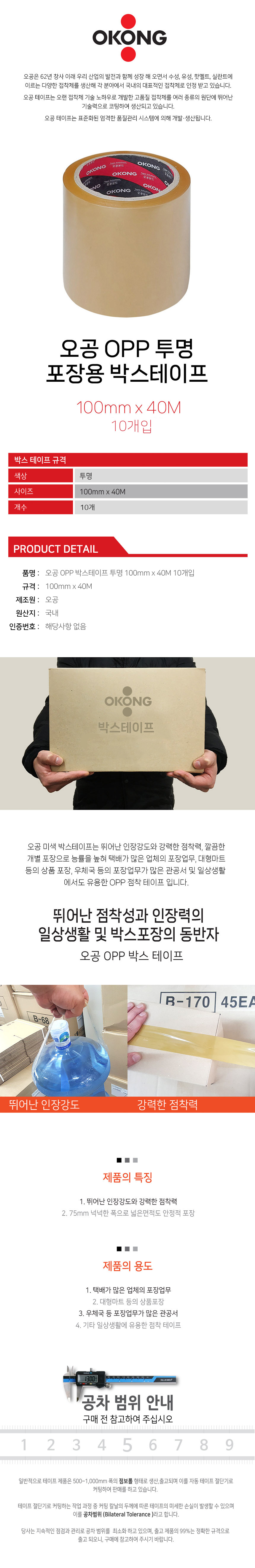 오공 OPP 박스테이프 투명 100mm x 40M 10개입