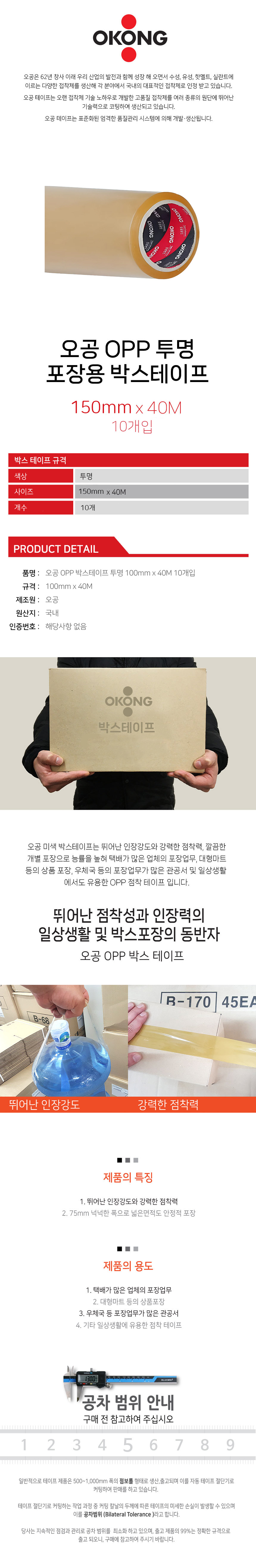 오공 OPP 박스테이프 투명 150mm x 40M 10개입