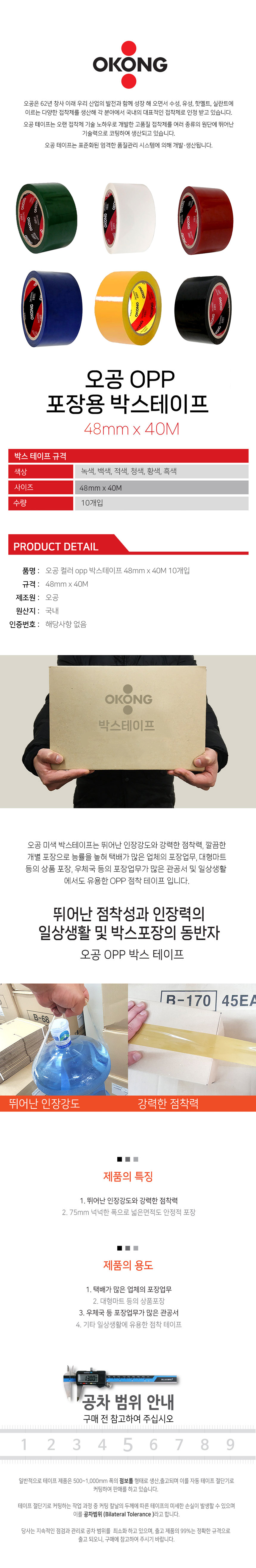 오공 컬러 OPP 박스테이프 48mm x 40M 10개입