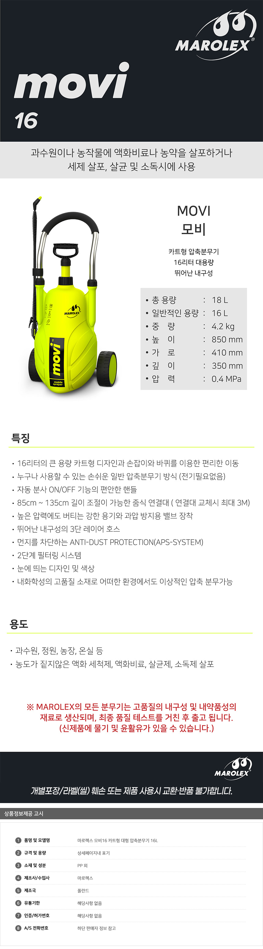 마로렉스 모비16 카트형 대형 압축분무기 16L