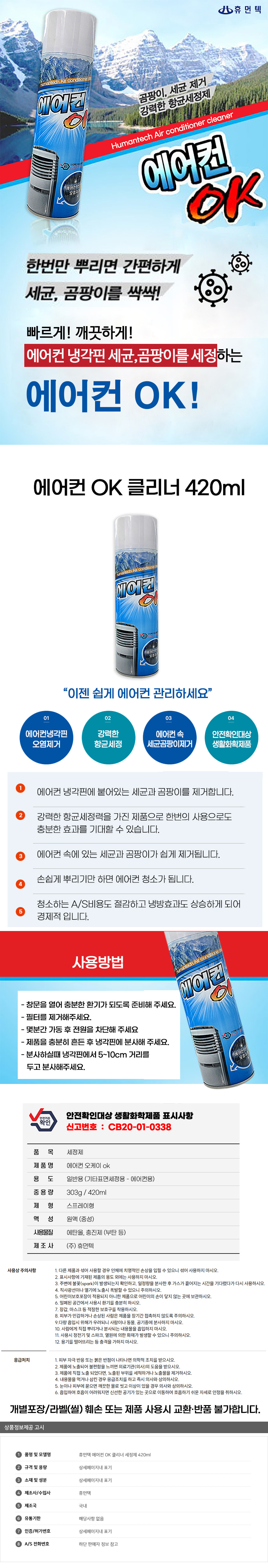 휴먼텍 에어컨 OK 클리너 세정제 420ml