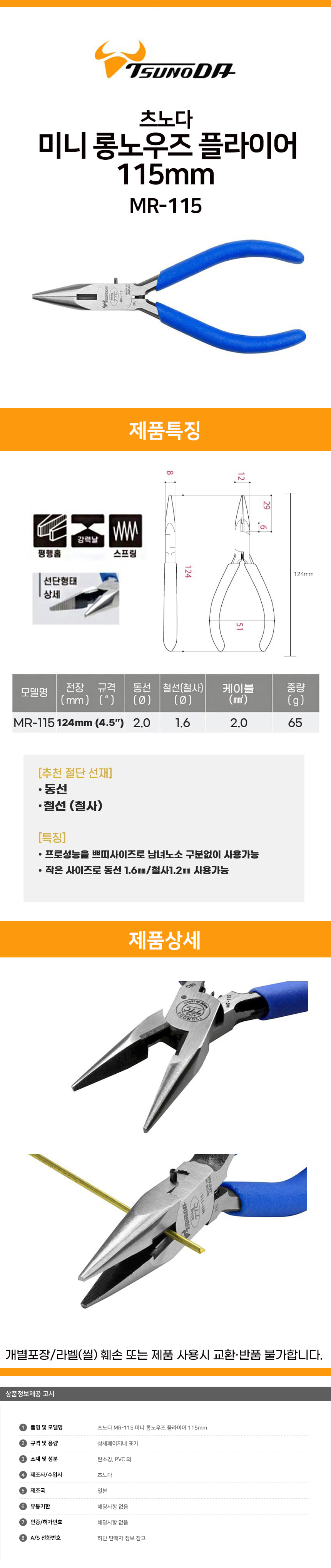 츠노다 MR-115 미니 롱노우즈 플라이어 115mm