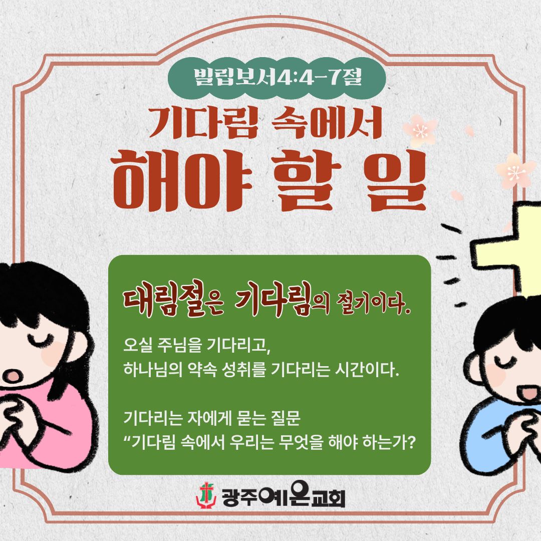 광주예은교회에서 예배드리고 축복받는 하루되세요.